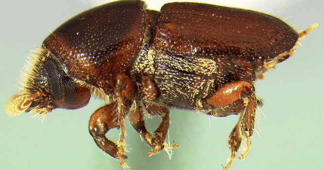 The European elm bark beetle is the key culprit for spreading the disease, transmitting fungal spores as it tunnels into healthy trees.